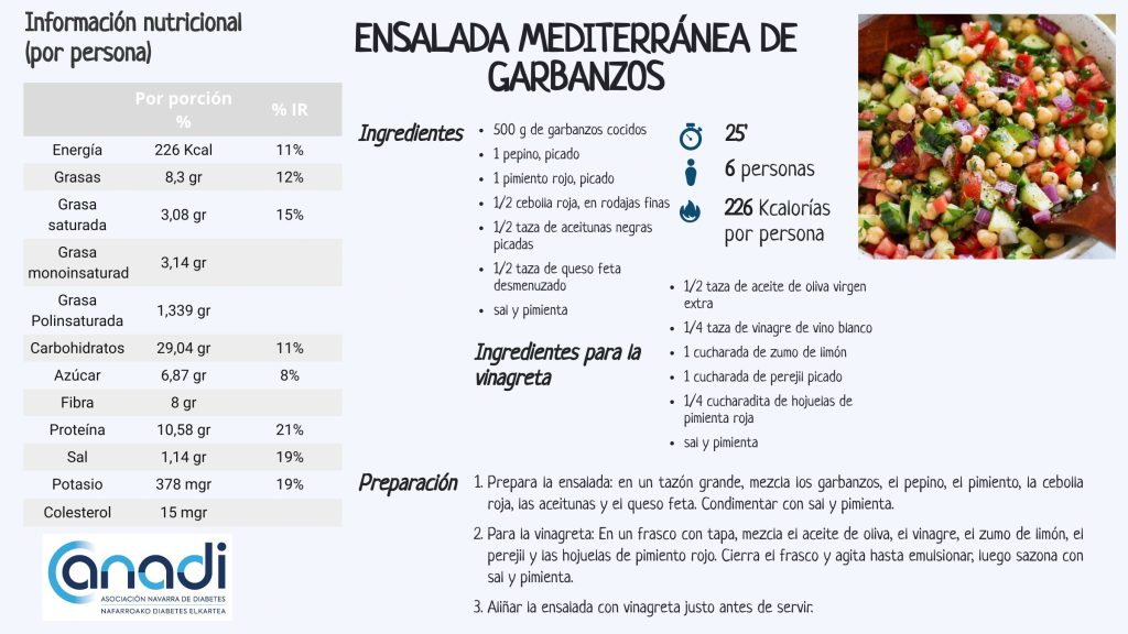 - Prepara la ensalada: en un tazón grande, mezcla los garbanzos, el pepino, el pimiento, la cebolla roja, las aceitunas y el queso feta. Condimentar con sal y pimienta.