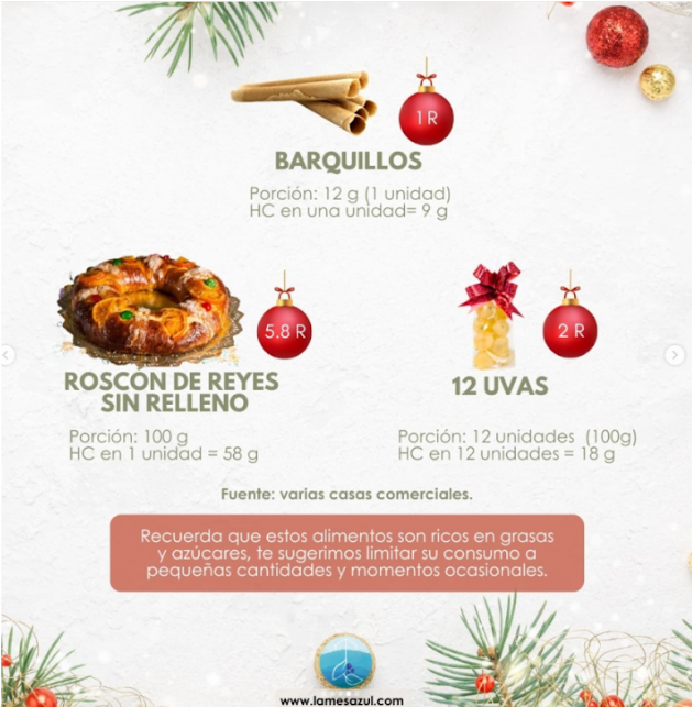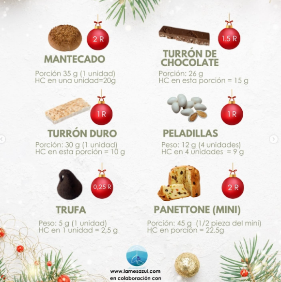 - Algunos alimentos navideños, como los polvorones y turrones, contienen carbohidratos son de absorción lenta y solo un pequeño número son de absorción rápida. Además, este plato posee grasa y fibra. No obstante, no se debe sobrepasar este tipo de alimentos y siempre es necesario llevar a cabo un control de glucosa postprandial para verificar si el resultado es positivo o si se requieren otras elecciones en el futuro.