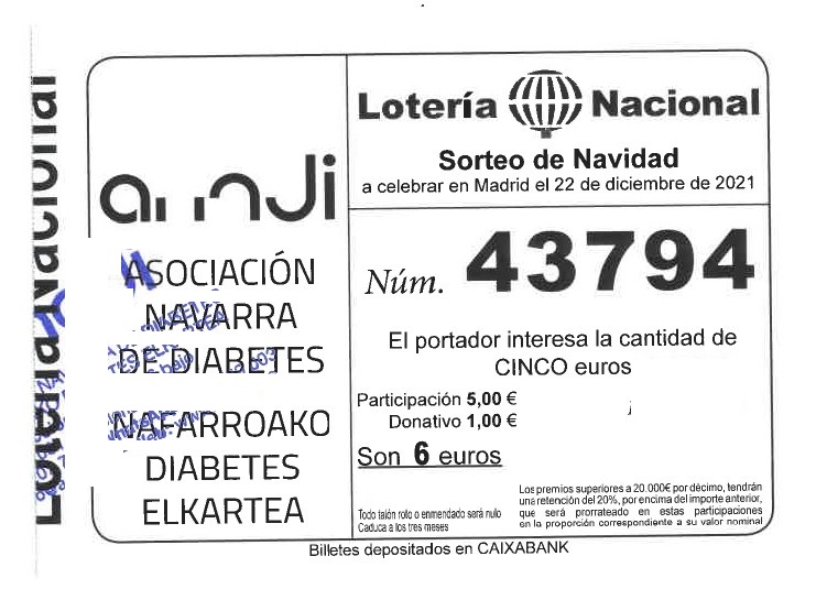 5 € y 1 € de donativo para ANADI. Con la compra de lotería de ANADI, colaboras en la promoción y sustento de las actividades de tu entidad para el próximo año.