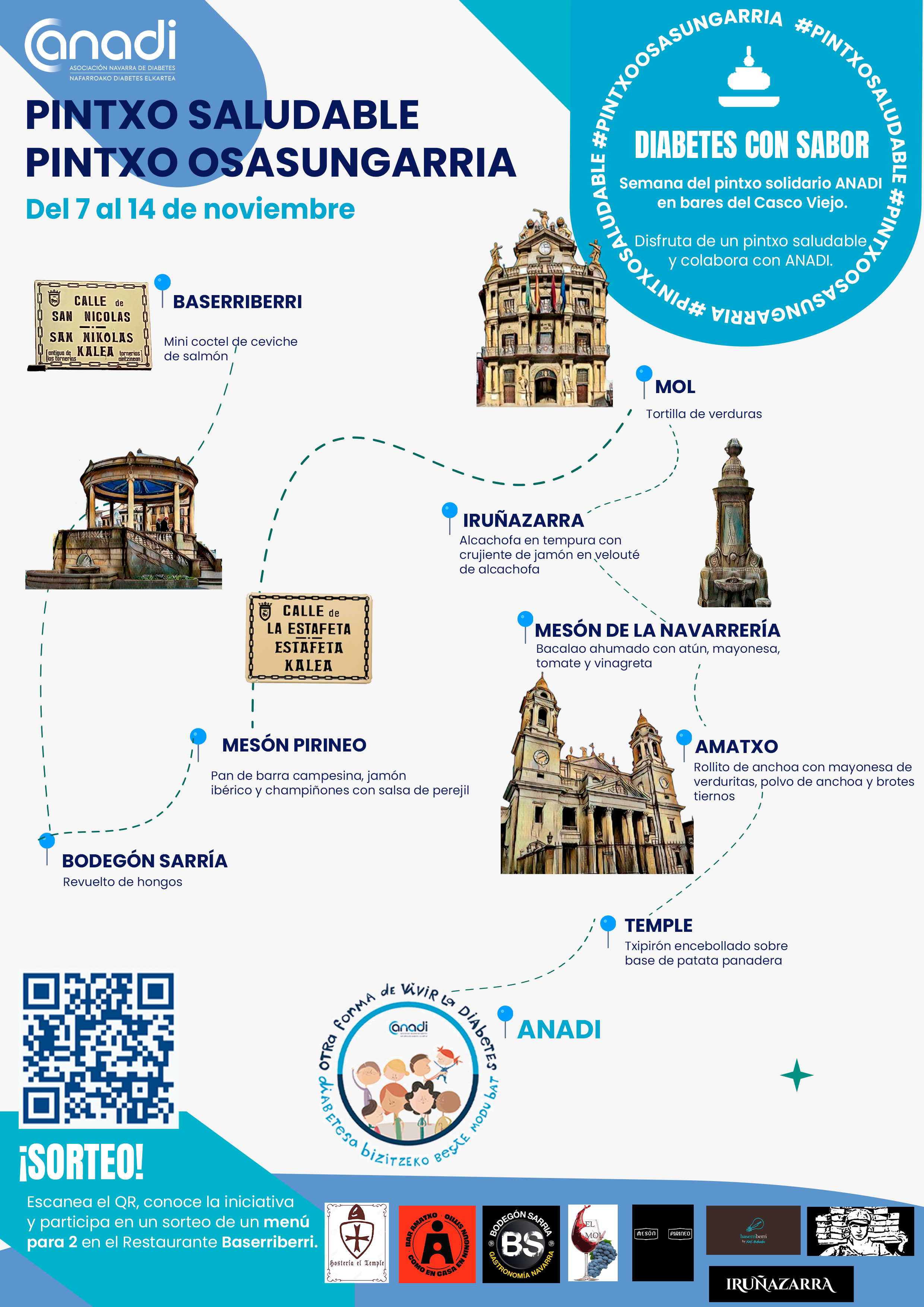 Con motivo del Día Mundial de la Diabetes, celebrado el 14 de noviembre, ANADI ha lanzado la iniciativa Pintxo Saludable, con el objetivo de promover hábitos de alimentación saludable y apoyar la prevención de la diabetes, una enfermedad que afecta a más de 50,000 personas en Navarra.