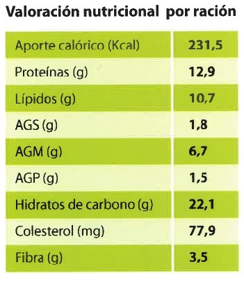 - Nº Raciones de Hidratos de carbono por persona: 2,2 aportadas principalmente por la patata.